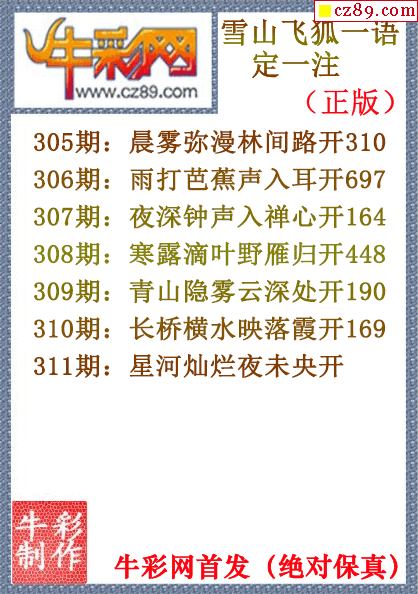 > 25年311期雪山飞狐一语定一注(原创正版)